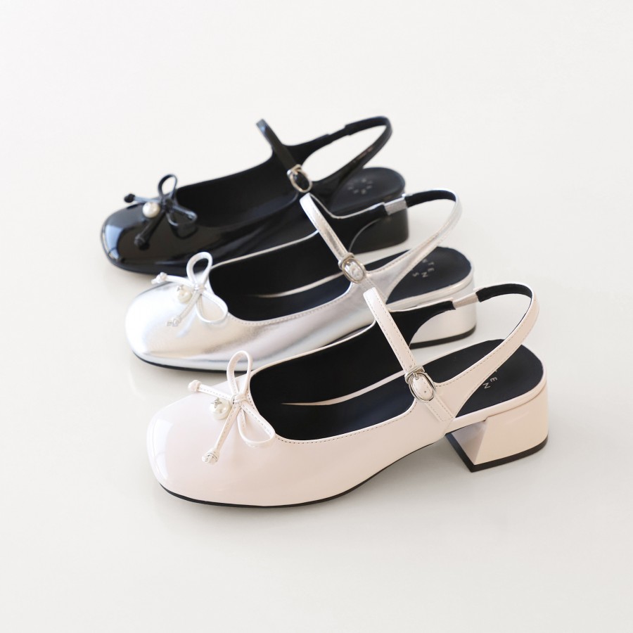 인텐스 by 엘칸토 여성 진주 리본 메리제인 슬링백 4cm LCWO29I613